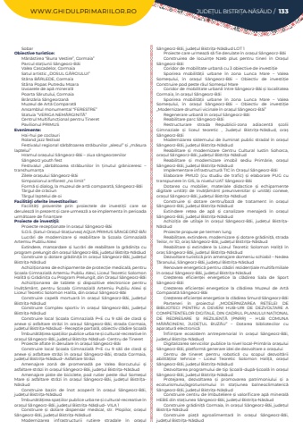 WWW.GHIDULPRIMARIILOR.RO JUDE%u021aUL BISTRI%u021aA-N%u0102S%u0102UD / 133 SobarObiective turistice:M%u0103n%u0103stirea %u201cBuna Vestire%u201d, Cormaia%u201dParcul sta%u021biunii S%u00e2ngeorz-B%u0103iValea Cascadelor, CormaiaSatul artistic %u201eDOSUL G%u00c2RCIULUI%u201dSt%u00e2na B%u00c2RLEDE, CormaiaSt%u00e2na Popas Putredu MoaraIzvoarele de ap%u0103 mineral%u0103Poarta S%u0103rutului, CormaiaBr%u00e2nz%u0103ria S%u00e2ngeorzan%u0103Muzeul de Art%u0103 Comparat%u0103Ansamblul monumental %u201cFERESTRE%u201d Statuia %u201cVERIGA NEM%u0102RGINIT%u0102%u201dCentrul Multifunc%u021bional pentru Tineret Pavilionul PRIMUSEvenimente:Hai-hui pe coclauriRoland jazz festivalFestivalul regional s%u0103rb%u0103toarea str%u0103bunilor %u201ealesul%u201d %u0219i %u201em%u0103sura laptelui%u201dHramul ora%u0219ului S%u00e2ngeorz-B%u0103i %u2013 ziua s%u00e2ngeorzenilorS%u00e2ngeorz youth festFestivalul %u201es%u0103rb%u0103toarea str%u0103bunilor %u00een %u021binutul gr%u0103niceresc %u2013 transhuman%u021baZilele ora%u0219ului S%u00e2ngeorz-B%u0103iSimpozionul artforest %u201eno limit%u201dForm%u0103 %u0219i dialog, la muzeul de art%u0103 comparat%u0103, S%u00e2ngeorz-B%u0103iT%u00e2rgul de cr%u0103ciun T%u00e2rgul laptelui de oiFacilit%u00e3%u0163i oferite investitorilor:Facilit%u0103%u021bi provenite prin proiectele de investi%u021bii care se deruleaz%u0103 %u00een prezent %u0219i care urmeaz%u0103 a se implementa %u00een perioada urm%u0103toare de finan%u021bareProiecte de investi%u0163ii:Proiecte recep%u021bionate %u00een ora%u0219ul S%u00e2ngeorz-B%u0103iS.O.S. (Satul-Ora%u0219ul-Sta%u021biunea) AQUA PRIMUS S%u00c2NGEORZ-B%u0102ILucr%u0103ri de modernizare %u0219i reabilitare la %u0218coala Gimnazial%u0103 Artemiu Publiu AlexiExtindere, mansardare %u0219i lucr%u0103ri de reabilitare la gr%u0103dini%u021ba cu program prelungit din ora%u0219ul S%u00e2ngeorz-B%u0103i, jude%u021bul Bistri%u021ba-N%u0103s%u0103udConstruire %u0219i dotare gr%u0103dini%u021b%u0103 %u00een ora%u0219ul S%u00e2ngeorz-B%u0103i, jude%u021bul Bistri%u021ba-N%u0103s%u0103udAchizi%u021bionarea de echipamente de protec%u021bie medical%u0103, pentru %u0218coala Gimnazial%u0103%u00a0Artemiu Publiu Alexi, Liceul Teoretic Solomon Halit%u0103 %u0219i Gr%u0103dini%u021ba cu Program Prelungit, din Ora%u0219ul S%u00e2ngeorz-B%u0103iAchizi%u021bionarea de tablete %u0219i dispozitive electronice pentru %u00eenv%u0103%u021b%u0103m%u00e2nt, pentru %u0218coala Gimnazial%u0103%u00a0 Artemiu Publiu Alexi %u0219i Liceul Teoretic Solomon Halita, din orasul S%u00e2ngeorz-B%u0103iConstruire capel%u0103 mortuar%u0103 %u00een ora%u0219ul S%u00e2ngeorz-B%u0103i, jude%u021bul Bistri%u021ba-N%u0103s%u0103udConstruire Complex sportiv %u00een ora%u0219ul S%u00e2ngeorz-B%u0103i, jude%u021bul Bistri%u021ba-N%u0103s%u0103udConstruire local %u0218coala Gimnazial%u0103 P+E cu 9 s%u0103li de clas%u0103 %u0219i anexe %u0219i asfaltare str%u0103zi %u00een ora%u0219ul S%u00e2ngeorz-B%u0103i, strada Cormaia, jude%u021bul Bistri%u021ba-N%u0103s%u0103ud%u00a0- Recep%u021bie partial%u0103, obiectiv cl%u0103dire %u0218coal%u0103%u00cembun%u0103t%u0103%u021birea spa%u021biilor publice urbane %u0219i cultural-recreative %u00een ora%u0219ul S%u00e2ngeorz-B%u0103i, jude%u021bul Bistri%u021ba-N%u0103s%u0103ud%u2013 Centru de TineretProiecte aflate %u00een derulare %u00een ora%u0219ul S%u00e2ngeorz-B%u0103iConstruire local %u0218coala Gimnazial%u0103 P+E cu 9 s%u0103li de clas%u0103 %u0219i anexe %u0219i asfaltare str%u0103zi %u00een ora%u0219ul S%u00e2ngeorz-B%u0103i, strada Cormaia, jude%u021bul Bistri%u021ba-N%u0103s%u0103ud%u2013 Asfaltare Str%u0103zi Amenajare zon%u0103 de promenad%u0103 pe Valea Borcutului %u0219i asfaltare str%u0103zi %u00een ora%u0219ul S%u00e2ngeorz-B%u0103i, jude%u021bul Bistri%u021ba-N%u0103s%u0103udAmenajare piste de biciclete, pod rutier peste r%u00e2ul Some%u0219ul Mare %u0219i asfaltare str%u0103zi %u00een ora%u0219ul S%u00e2ngeorz-B%u0103i, jude%u021bul Bistri%u021baN%u0103s%u0103udConstruire bazin de %u00eenot acoperit %u00een ora%u0219ul S%u00e2ngeorz-B%u0103i, jude%u021bul Bistri%u021ba-N%u0103s%u0103ud%u00cembun%u0103t%u0103%u021birea spa%u021biilor publice urbane %u0219i cultural-recreative %u00een ora%u0219ul S%u00e2ngeorz-B%u0103i, jude%u021bul Bistri%u021ba-N%u0103s%u0103ud%u2013 VILA 1Construire %u0219i dotare dispensar medical, str. Plopilor, ora%u0219ul S%u00e2ngeorz-B%u0103i, jude%u021bul Bistri%u021ba-N%u0103s%u0103ud Modernizarea infrastructurii rutiere stradale %u00een ora%u0219ul S%u00e2ngeorz-B%u0103i, jude%u021bul Bistri%u021ba-N%u0103s%u0103ud%u00a0LOT 1Proiecte care urmeaz%u0103 s%u0103 fie derulate %u00een ora%u0219ul S%u00e2ngeorz-B%u0103iConstruirea de locuin%u021be Nzeb plus pentru tineri %u00een Ora%u0219ul S%u00e2ngeorz-B%u0103i Coridor de mobilitate urban%u0103 cu 3 obiective de investi%u021bieSporirea mobilit%u0103%u021bii urbane %u00een zona Lunca Mare %u2013 Valea Some%u0219ului, %u00een ora%u0219ul S%u00e2ngeorz-B%u0103i %u2013 Obiectiv de investi%u021bie Construire pod peste r%u00e2ul Some%u0219ul MareCoridor de mobilitate urban%u0103 %u00eentre S%u00e2ngeorz-B%u0103i %u0219i localitatea Cormaia, %u00een ora%u0219ul S%u00e2ngeorz-B%u0103iSporirea mobilit%u0103%u021bii urbane %u00een zona Lunca Mare %u2013 Valea Some%u0219ului, %u00een ora%u0219ul S%u00e2ngeorz-B%u0103i %u2013 Obiectiv de investi%u021bie %u201eModernizare drumuri vicinale %u00een ora%u0219ul S%u00e2ngeorz-B%u0103i%u201dRegenerare urban%u0103 %u00een ora%u0219ul S%u00e2ngeorz-B%u0103iReabilitare parc S%u00e2ngeorz-B%u0103iRestructurare strada Republicii-zona adiacent%u0103 %u0219colii Gimnaziale %u0219i liceul teoretic%u00a0 , Jude%u021bul Bistri%u021ba-N%u0103s%u0103ud, ora%u0219 S%u00e2ngeorz-B%u0103iModernizarea sistemului de iluminat public stradal %u00een ora%u0219ul S%u00e2ngeorz-B%u0103i, jude%u021bul Bistri%u021ba-N%u0103s%u0103udReabilitare %u0219i modernizare Centru Cultural Iustin Sohorca, ora%u0219ul S%u00e2ngeorz-B%u0103i, jud