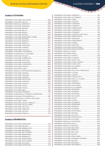 WWW.GHIDULPRIMARIILOR.RO CUPRINS PRIM%u0102RII / 789Jude%u021bul COVASNAPRIM%u00c3RIA COMUNEI AITA MARE .................................................305PRIM%u00c3RIA COMUNEI ARCU%u0218...........................................................305PRIM%u00c3RIA ORA%u0218ULUI BARAOLT....................................................305PRIM%u00c3RIA COMUNEI BARCANI......................................................306PRIM%u00c3RIA COMUNEI B%u00c3%u021aANI..........................................................306PRIM%u00c3RIA COMUNEI BELIN.............................................................306PRIM%u00c3RIA COMUNEI BIXAD.............................................................306PRIM%u00c3RIA COMUNEI BODOC.........................................................306PRIM%u00c3RIA COMUNEI BORO%u0218NEU MARE................................306PRIM%u00c3RIA COMUNEI BRATE%u0218.........................................................307PRIM%u00c3RIA COMUNEI BR%u00c3DU%u021a .......................................................307PRIM%u00c3RIA COMUNEI BRE%u021aCU........................................................307PRIM%u00c3RIA COMUNEI C%u00c3T%u00c3LINA....................................................307PRIM%u00c3RIA COMUNEI CERNAT........................................................307PRIM%u00c3RIA COMUNEI CHICHI%u0218........................................................307PRIM%u00c3RIA COMUNEI COMAND%u00c3U..............................................307PRIM%u00c3RIA MUNICIPIULUI COVASNA .........................................308PRIM%u00c3RIA COMUNEI DALNIC.........................................................308PRIM%u00c3RIA COMUNEI DOB%u00c2RL%u00c3U................................................308PRIM%u00c3RIA COMUNEI ESTELNIC.....................................................308PRIM%u00c3RIA COMUNEI GHELIN%u021aA ...................................................308PRIM%u00c3RIA COMUNEI GHIDFAL%u00c3U...............................................308PRIM%u00c3RIA COMUNEI H%u00c3GHIG........................................................308PRIM%u00c3RIA COMUNEI ILIENI..............................................................308PRIM%u00c3RIA ORA%u0218ULUI %u00ceNTORSURA BUZ%u00c3ULUI ...................308PRIM%u00c3RIA COMUNEI LEMNIA.........................................................308PRIM%u00c3RIA COMUNEI MALNA%u0218.......................................................309PRIM%u00c3RIA COMUNEI MERENI ........................................................309PRIM%u00c3RIA COMUNEI MICFAL%u00c3U ..................................................309PRIM%u00c3RIA COMUNEI MOAC%u0218A ......................................................309PRIM%u00c3RIA COMUNEI OJDULA........................................................309PRIM%u00c3RIA COMUNEI OZUN ..............................................................310PRIM%u00c3RIA COMUNEI POIAN.............................................................310PRIM%u00c3RIA COMUNEI RECI..................................................................310PRIM%u00c3RIA COMUNEI S%u00c2NZIENI......................................................310PRIM%u00c3RIA MUNICIPIULUI SF%u00c2NTU GHEORGHE.................. 311PRIM%u00c3RIA COMUNEI SITA BUZ%u00c3ULUI.......................................307PRIM%u00c3RIA MUNICIPIULUI T%u00c2RGU-SECUIESC......................... 311PRIM%u00c3RIA COMUNEI TURIA ............................................................... 311PRIM%u00c3RIA COMUNEI VALEA CRI%u0218ULUI...................................... 311PRIM%u00c3RIA COMUNEI VALEA MARE .............................................. 311PRIM%u00c3RIA COMUNEI V%u00c2LCELE........................................................ 311PRIM%u00c3RIA COMUNEI V%u00c2RGHI%u0218....................................................... 312PRIM%u00c3RIA COMUNEI ZAGON........................................................... 312PRIM%u00c3RIA COMUNEI Z%u00c3BALA ......................................................... 312Jude%u021bul D%u00c2MBOVI%u021aAPRIM%u00c3RIA COMUNEI ANINOASA................................................... 313PRIM%u00c3RIA COMUNEI B%u00c3LENI........................................................... 313PRIM%u00c3RIA COMUNEI B%u00c3RBULE%u021aU............................................... 313PRIM%u00c3RIA COMUNEI BEZDEAD..................................................... 313PRIM%u00c3RIA COMUNEI BILCIURE%u0218TI............................................... 313PRIM%u00c3RIA COMUNEI BRANI%u0218TEA................................................. 313PRIM%u00c3RIA COMUNEI BR%u00c3NE%u0218TI..................................................... 313PRIM%u00c3RIA COMUNEI BREZOAELE............................................... 313PRIM%u00c3RIA COMUNEI BUCIUMENI................................................ 313PRIM%u00c3RIA COMUNEI BUC%u0218ANI....................................................... 313PRIM%u00c3RIA COMUNEI BUTIMANU.................................................. 313PRIM%u00c3RIA COMUNEI C%u00c2NDE%u0218TI .................................................... 313PRIM%u00c3RIA COMUNEI CIOC%u00c3NE%u0218TI ...............................................314PRIM%u00c3RIA COMUNEI COBIA............................................................. 315PRIM%u00c3RIA COMUNEI COJASCA ...................................................... 315PRIM%u00c3RIA COMUNEI COMI%u0218ANI.................................................... 315PRIM%u00c3RIA COMUNEI CON%u021aE%u0218TI.....................................................314PRIM%u00c3RIA COMUNEI CORBII MARI.............................................. 315PRIM%u00c3RIA COMUNEI CORN%u00c3%u021aELU............................................... 315PRIM%u00c3RIA COMUNEI CORNE%u0218TI.................................................... 315PRIM%u00c3RIA COMUNEI COSTE%u0218TII DIN VALE ............................316PRIM%u00c3RIA COMUNEI CR%u00c2