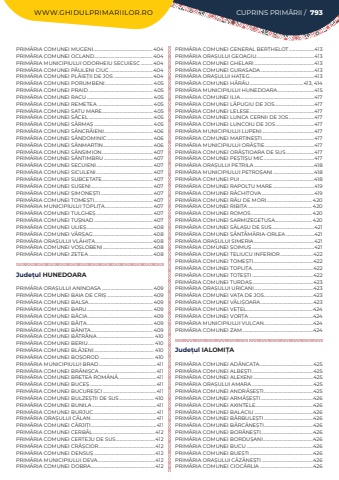 WWW.GHIDULPRIMARIILOR.RO CUPRINS PRIM%u0102RII / 793PRIM%u00c3RIA COMUNEI MUGENI.......................................................404PRIM%u00c3RIA COMUNEI OCLAND......................................................404PRIM%u00c3RIA MUNICIPIULUI ODORHEIU SECUIESC ...........404PRIM%u00c3RIA COMUNEI P%u00c3ULENI CIUC ........................................404PRIM%u00c3RIA COMUNEI PL%u00c3IE%u021aII DE JOS ....................................404PRIM%u00c3RIA COMUNEI PORUMBENI............................................ 405PRIM%u00c3RIA COMUNEI PRAID ........................................................... 405PRIM%u00c3RIA COMUNEI RACU............................................................. 405PRIM%u00c3RIA COMUNEI REMETEA ................................................... 405PRIM%u00c3RIA COMUNEI SATU MARE............................................... 405PRIM%u00c3RIA COMUNEI S%u00c3CEL ........................................................... 405PRIM%u00c3RIA COMUNEI S%u00c3RMA%u0218 ...................................................... 405PRIM%u00c3RIA COMUNEI S%u00c2NCR%u00c3IENI.............................................406PRIM%u00c3RIA COMUNEI S%u00c2NDOMINIC ..........................................406PRIM%u00c3RIA COMUNEI S%u00c2NMARTIN..............................................406PRIM%u00c3RIA COMUNEI S%u00c2NSIMION...............................................407PRIM%u00c3RIA COMUNEI S%u00c2NTIMBRU .............................................407PRIM%u00c3RIA COMUNEI SECUIENI....................................................407PRIM%u00c3RIA COMUNEI SICULENI....................................................407PRIM%u00c3RIA COMUNEI SUBCETATE...............................................407PRIM%u00c3RIA COMUNEI SUSENI.........................................................407PRIM%u00c3RIA COMUNEI %u0218IMONE%u0218TI................................................407PRIM%u00c3RIA COMUNEI TOME%u0218TI......................................................407PRIM%u00c3RIA MUNICIPIULUI TOPLI%u021aA............................................407PRIM%u00c3RIA COMUNEI TULGHE%u0218....................................................407PRIM%u00c3RIA COMUNEI TU%u0218NAD ......................................................407PRIM%u00c3RIA COMUNEI ULIE%u0218.............................................................408PRIM%u00c3RIA COMUNEI V%u00c3R%u0218AG.......................................................408PRIM%u00c3RIA ORA%u0218ULUI VL%u00c3HI%u021aA.....................................................408PRIM%u00c3RIA COMUNEI VO%u0218LOBENI..............................................408PRIM%u00c3RIA COMUNEI ZETEA ...........................................................408Jude%u021bul HUNEDOARAPRIM%u00c3RIA ORA%u0218ULUI ANINOASA ...............................................409PRIM%u00c3RIA COMUNEI BAIA DE CRI%u0218 ..........................................409PRIM%u00c3RIA COMUNEI BALSA...........................................................409PRIM%u00c3RIA COMUNEI BARU.............................................................409PRIM%u00c3RIA COMUNEI B%u00c3CIA............................................................409PRIM%u00c3RIA COMUNEI B%u00c3I%u021aA.............................................................409PRIM%u00c3RIA COMUNEI B%u00c3NI%u021aA.........................................................409PRIM%u00c3RIA COMUNEI B%u00c3TR%u00c2NA .................................................... 410PRIM%u00c3RIA COMUNEI BERIU............................................................. 410PRIM%u00c3RIA COMUNEI BL%u00c3JENI ....................................................... 410PRIM%u00c3RIA COMUNEI BO%u0218OROD .................................................. 410PRIM%u00c3RIA MUNICIPIULUI BRAD.....................................................411PRIM%u00c3RIA COMUNEI BR%u00c3NI%u0218CA.....................................................411PRIM%u00c3RIA COMUNEI BRETEA ROM%u00c2N%u00c3...................................411PRIM%u00c3RIA COMUNEI BUCE%u0218.............................................................411PRIM%u00c3RIA COMUNEI BUCURE%u0218CI.................................................411PRIM%u00c3RIA COMUNEI BULZE%u0218TII DE SUS................................ 410PRIM%u00c3RIA COMUNEI BUNILA...........................................................411PRIM%u00c3RIA COMUNEI BURJUC..........................................................411PRIM%u00c3RIA ORA%u0218ULUI C%u00c3LAN............................................................411PRIM%u00c3RIA COMUNEI C%u00c2RJI%u021aI............................................................411PRIM%u00c3RIA COMUNEI CERB%u00c3L.........................................................412PRIM%u00c3RIA COMUNEI CERTEJU DE SUS....................................412PRIM%u00c3RIA COMUNEI CR%u00c2%u0218CIOR....................................................412PRIM%u00c3RIA COMUNEI DENSU%u0218 ........................................................412PRIM%u00c3RIA MUNICIPIULUI DEVA.....................................................412PRIM%u00c3RIA COMUNEI DOBRA...........................................................412PRIM%u00c3RIA COMUNEI GENERAL BERTHELOT.......................413PRIM%u00c3RIA ORA%u0218ULUI GEOAGIU.....................................................413PRIM%u00c3RIA COMUNEI GHELARI.......................................................413PRIM%u00c3RIA COMUNEI GURASADA.................................................413PRIM%u00c3RIA ORA%u0218ULUI HA%u021aEG...........................................................413PRIM%u00c3RIA COMUNEI H%u00c3R%u00c3U.................................................413, 414PRIM%u00c3RIA MUNICIPIULUI HUNEDOARA..................................415PRIM%u00c3RIA COMUNEI ILIA....................................................................417PRIM%u00c3RIA COMUNEI L%u00c3PUGIU DE JOS...............................